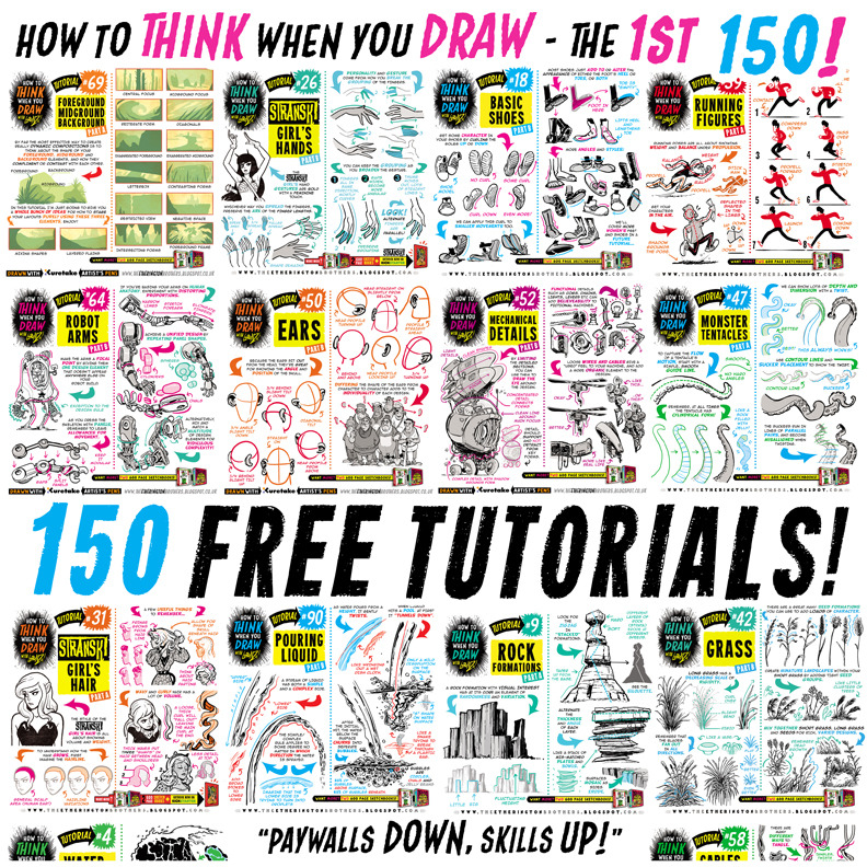 For those of you that like everything neatly organised, here’s links to EVERY ONE of my first 150 how to THINK when you draw TUTORIALS, in ALPHABETICAL ORDER for #SkillUpSunday! Enjoy, link, pin, share! Cheers!