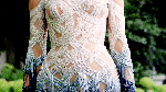 VERSACE Completely hand-embroidered, the beads on the Crystal Fountain dress fade from silver to navy blue hues. #AtelierVersace