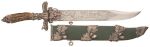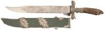 Exhibition quality German hunting knife with chiseled silver mountings and sheath, stag handle. Late 19th or early 20th century.